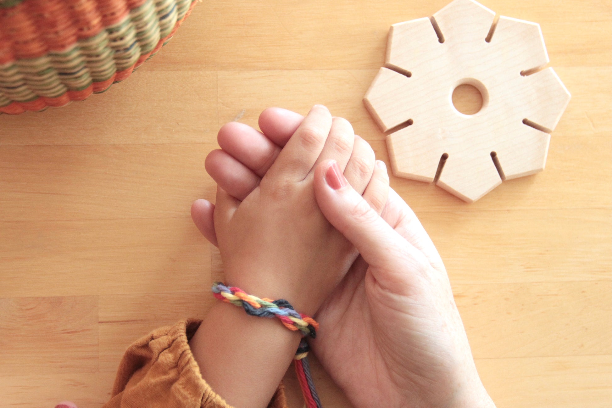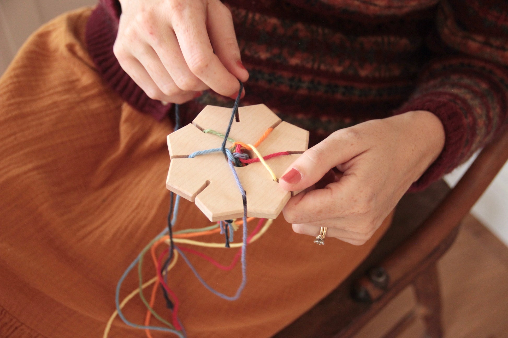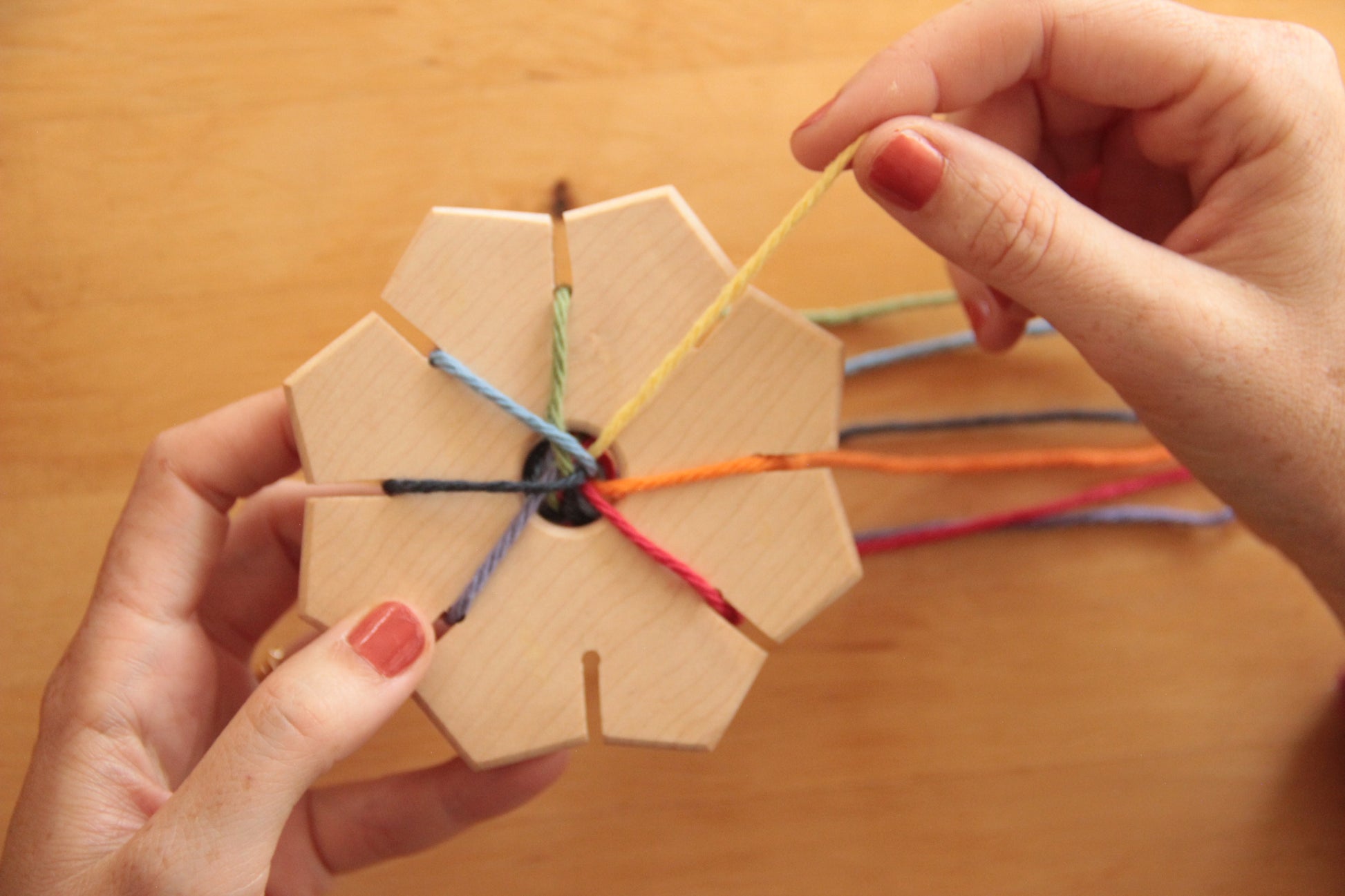 A magical rainbow star weaver to create beautiful braided cords. Now includes seven rainbow cotton yarn strands to make one bracelet. The possibilities are endless from bracelets, to dollhouse rugs, to handles for a nature bag, and more! Great for children ages 4+ and a wonderful introduction to handwork.